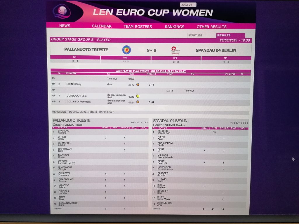 Unsere Damen haben heute in der Euro-League nach großem Kampf knapp gegen PN Trieste mit 9:8 verloren.